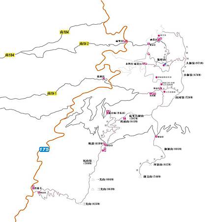 從175縣道上的碧蓮寺開始為登山口,經三尖、二尖、一尖山、馬山嶺後即可抵達終點仙公廟,亦可以反方向行走。步道主要沿著稜線縱走,其中二尖山最高,標高883公尺,縱走約需4小時的時間。