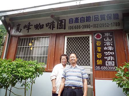 老闆陳得先生原本在台北從事造形燈柱、燈具,做得不錯,在退休後才在民國98年(2010年)設立本店,但從民國94年就開始種植咖啡樹,為東山區最高海拔的咖啡樹(約有900公尺),成為本店的最大特色。老闆與老闆娘都很親切,從台北退休後便開始在山上過著農夫的生活,種植咖啡與水蜜桃,因此高峰咖啡圓除了咖非受歡迎外,水蜜桃也是每年熟客爭相打電話預約的熱銷商品!!