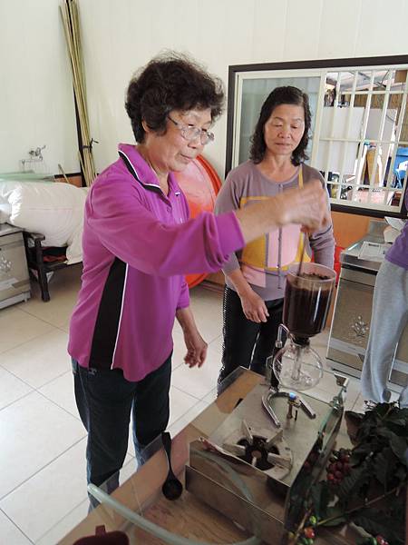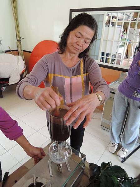 眼前社區媽媽們專業的煮咖啡架式立即成為我們的視覺焦點
