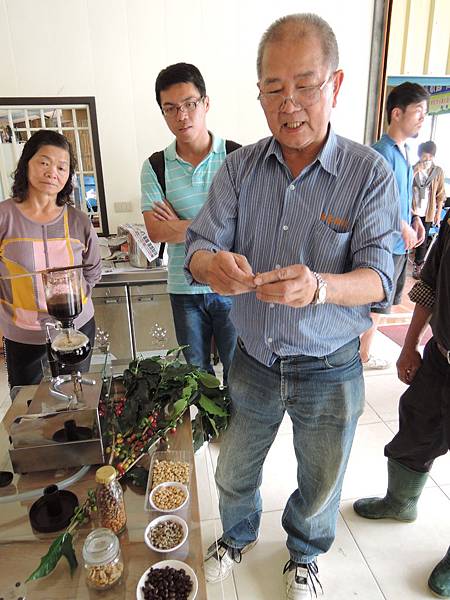 鄭監事拿起咖啡為大家解說咖啡如何製成