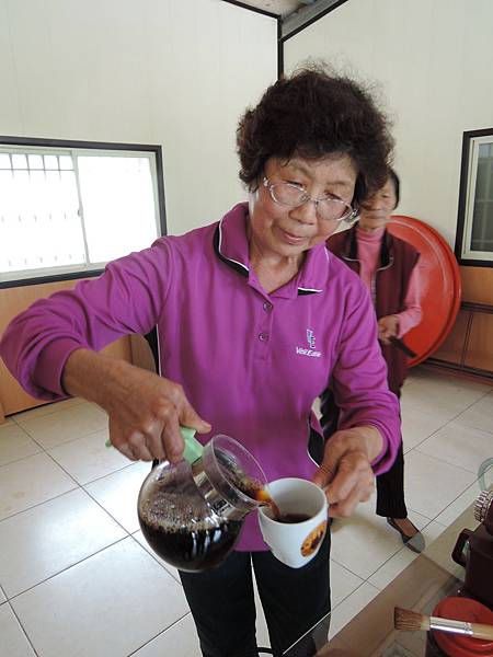 社區長輩打趣的說著,田裡的咖啡事男性來,進到廚房內則由女性來
