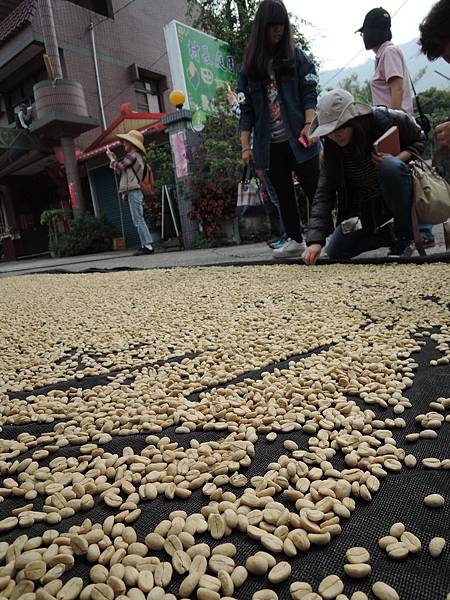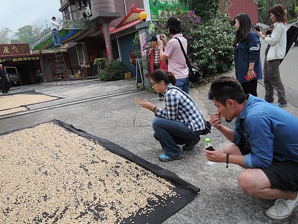 巧遇的門口埕曬咖啡豆場景,有著讓人想停頓下來瞧瞧的魔力