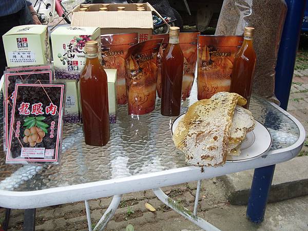 社區產業展示,前面的玻璃罐就是春蜜,容量600公克